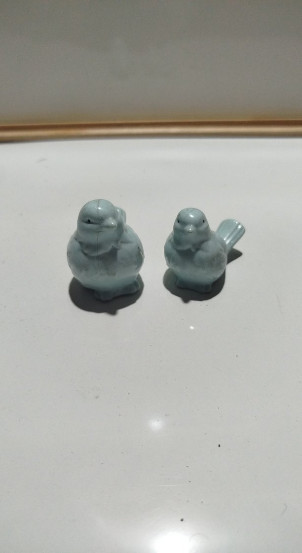 İki küçük turkuaz renkli, pürüzsüz yüzeyli kuş biblosu seti, dekorasyon için uygundur.
