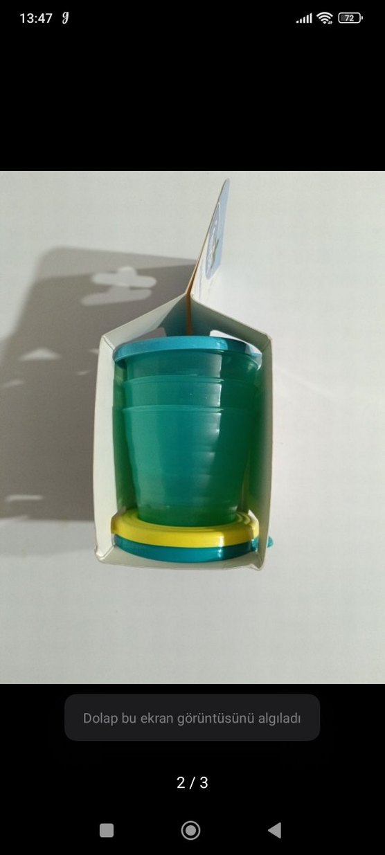 Turkuaz renginde, renkli kapaklı bebek mama kabı kolay kullanım için tasarlanmıştır.