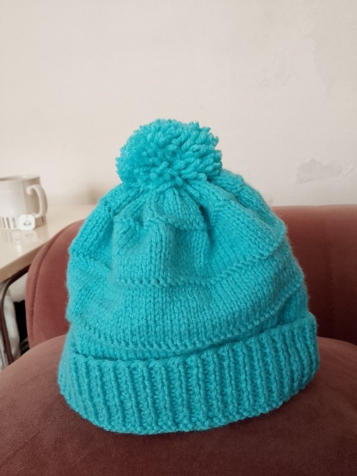 Turkuaz Renkli Örgü Kadın Bere el örgüsü yeni örüldü
