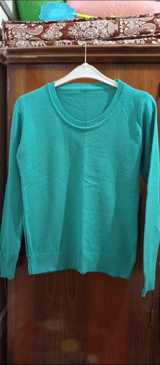 Turkuaz Renkli Örgü Kadın Sweatshirt