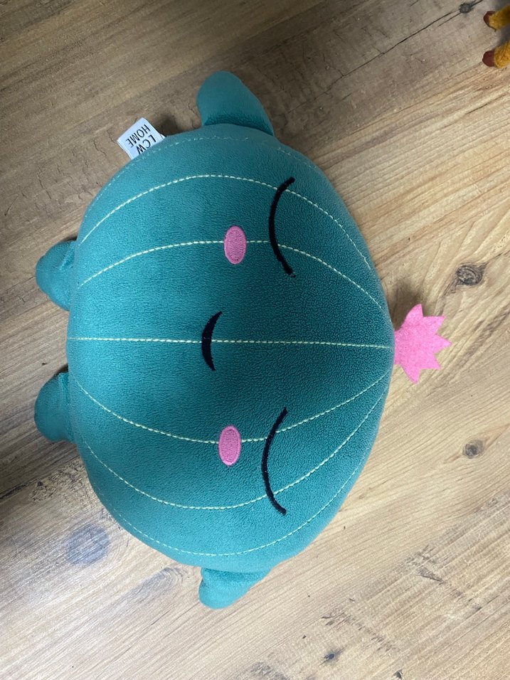 Turkuaz renkte, pembe yanaklı ve küçük pembe detaylı yumuşak peluş oyuncak. Nakışlı çizgiler ve küçük uzuvlar bulunur. Sıfır ürün