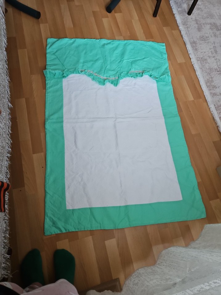 Pastel turkuaz renkte, el yapımı seccade
