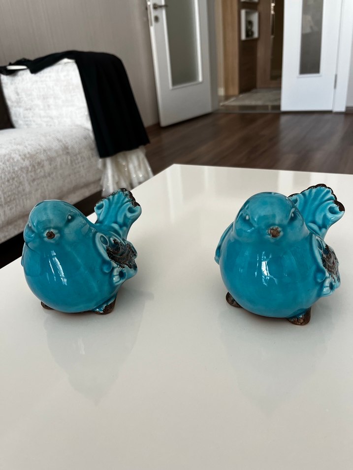 Turkuaz Renkli Seramik Kuş Biblo Seti