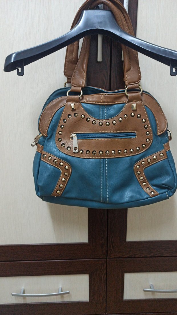 Turkuaz Renkli Tokalı Deri Kadın Çanta