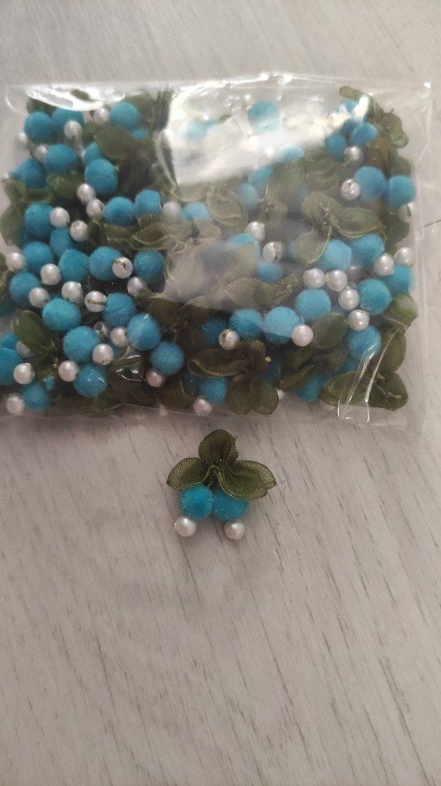 Turkuaz renkli, küçük yaprak ve inci detaylı çiçek motifli tülbent kenarı oyası 50 li paket, renkli tasarımları için uygundur.