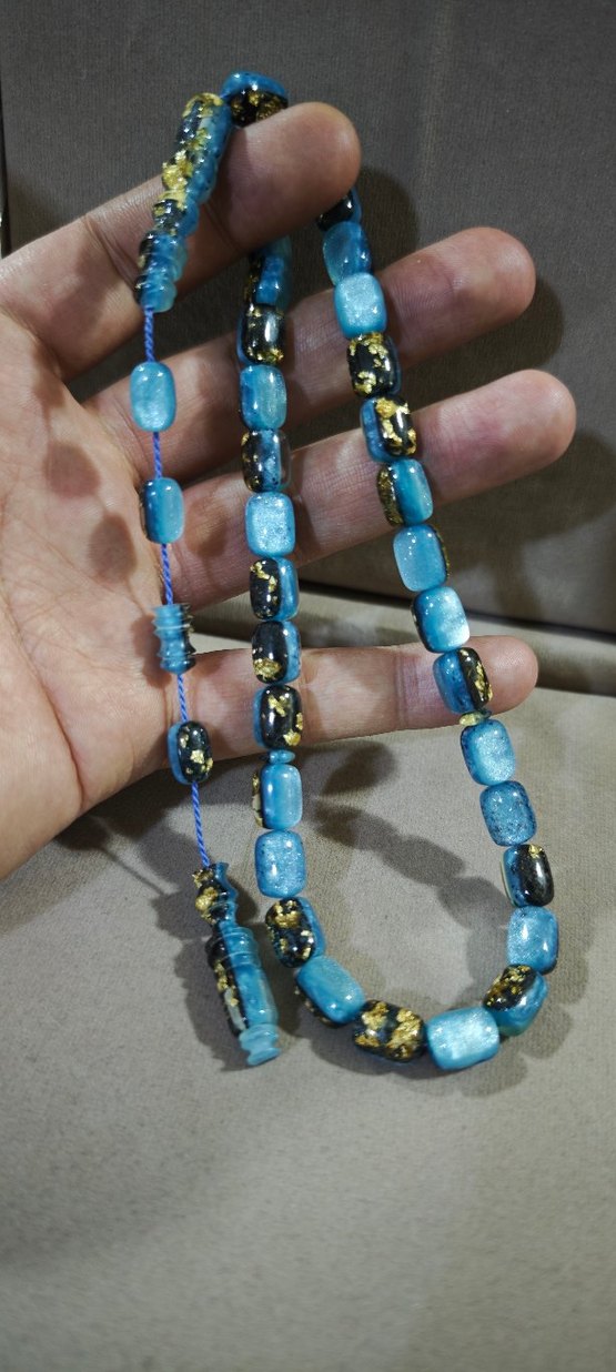 Turkuaz renkli yenilebilir altın parçacıklı Uçak camı tesbih