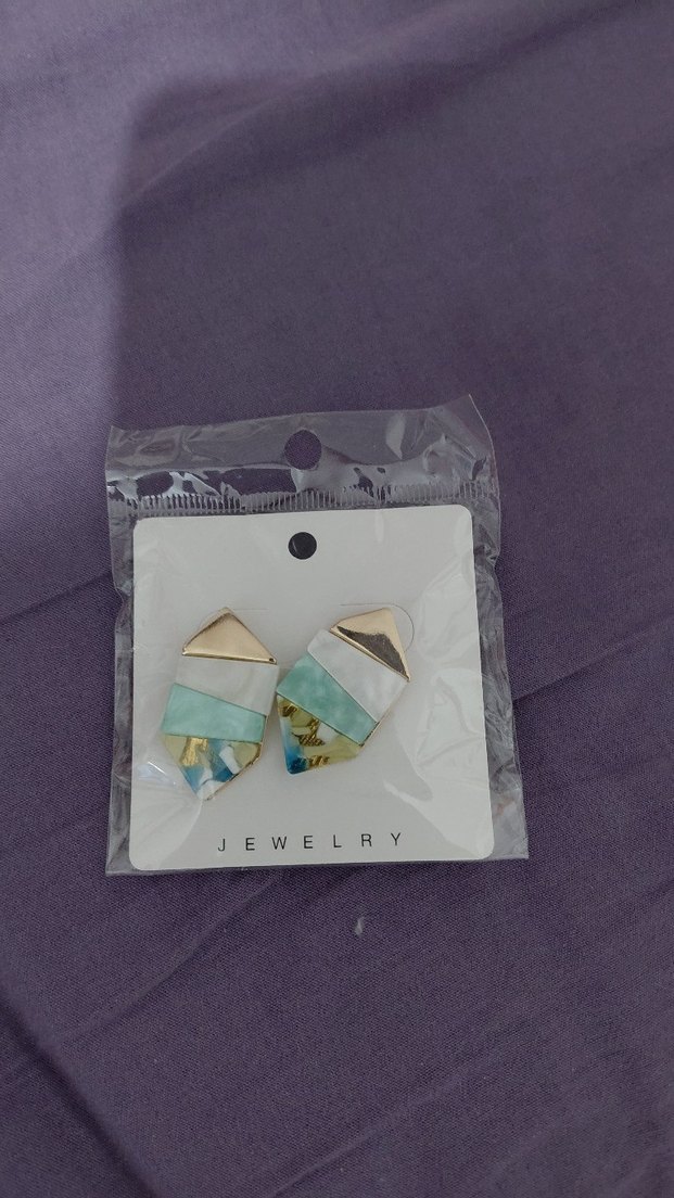 Turkuaz renkte,şekilli desenli küpe