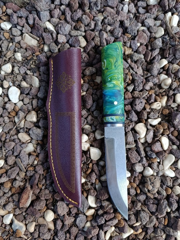 Turkuaz Saplı Bıçak ve Deri Kılıf