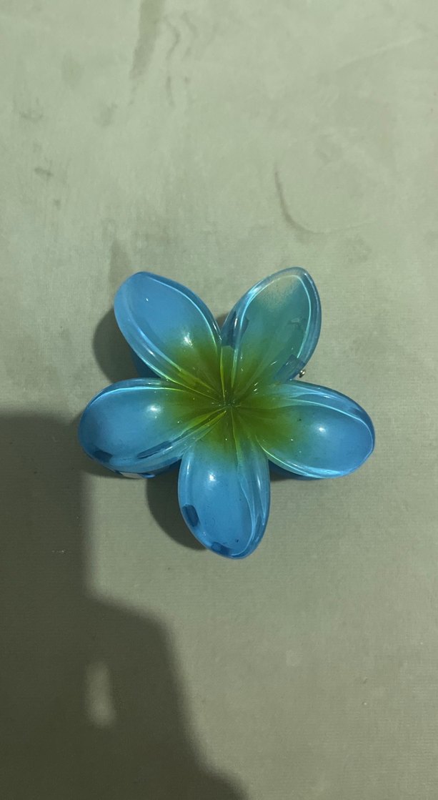 Bohem ve retro tarzlara uygun, şeffaf ve renkli tasarıma sahip turkuaz camdan yapılmış minimal çiçek şeklinde saç tokası.