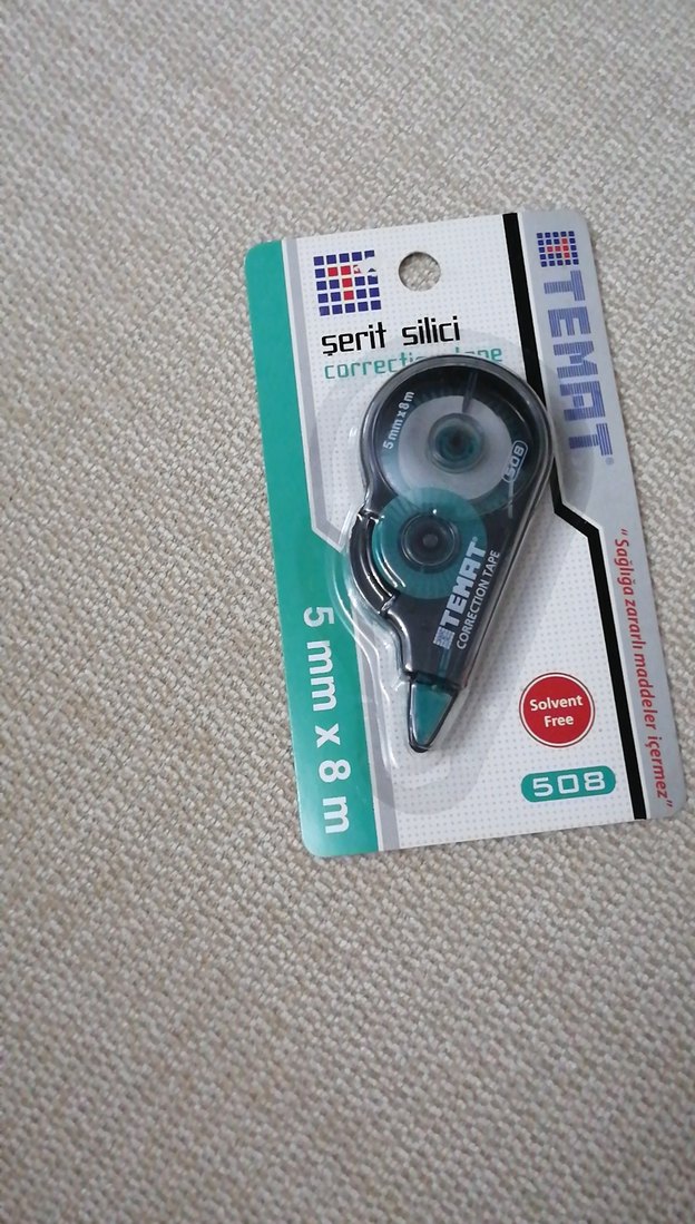 Temat markasına ait 5mm genişliğinde ve 8m uzunluğunda turkuaz şerit silici. Solvent içermez, kullanımı kolaydır.