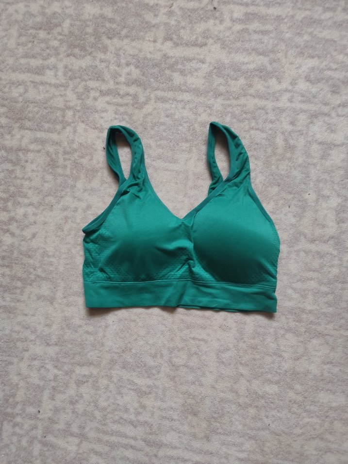 Turkuaz renkli, desen içermeyen spor sütyeni, rahat destek sağlar. Athleisure ve streetwear tarzları için uygundur.