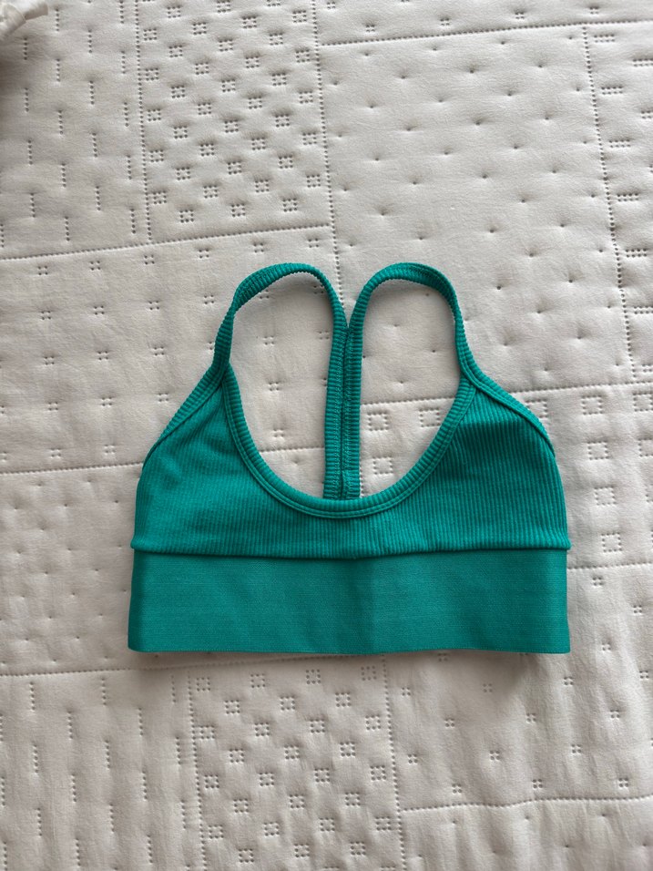 Turkuaz renkli, kabartmalı dokulu ve sırtı racerback tasarımlı sporcu sütyeni, sokak modası ve athleisure tarzına uygun. ♀️Marka temsili
