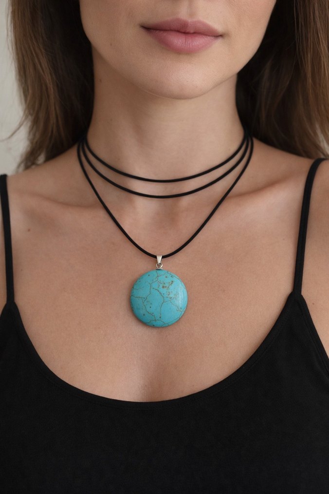 Turkuaz taşlı Bohem Kadın Kolye