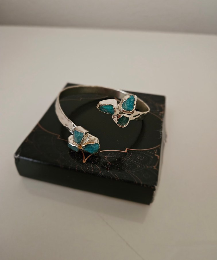 Turkuaz Taşlı Gümüş Renginde Bileklik