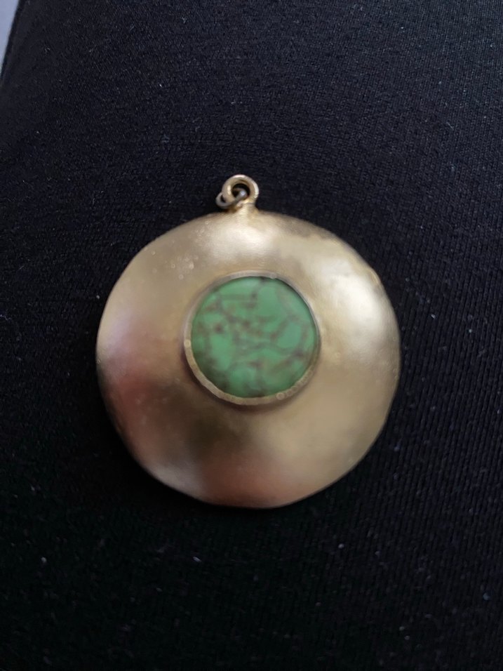 Parlak boncuk detaylı, ortasında turkuaz taş bulunan kadın bohem tarzı kolye ucu, günlük kullanım için uygundur.