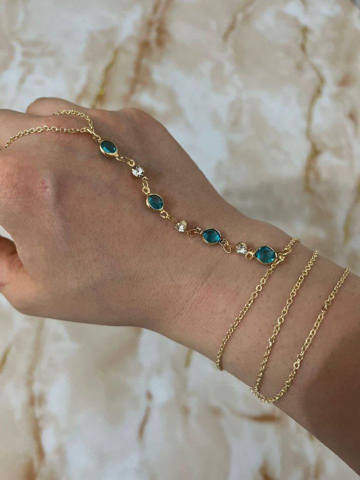 Diger markalı, turkuaz taşlı ve zincir detaylı bohem tarz kadın el zinciri. Yılan desenli, günlük kullanıma uygun.