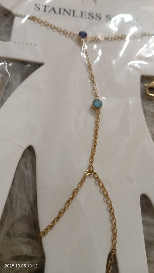 Turkuaz Taşlı Zincir Detaylı Kadın El Zinciri