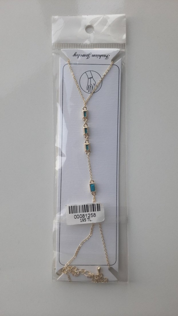 Bohem tarzda, turkuaz taş detaylı kadın el zinciri. Günlük kullanıma uygundur.