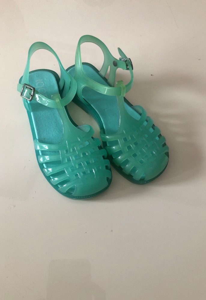 Turkuaz renkte, tokalı kız çocuk sandaletleri, dayanıklı kauçuk malzemeden yapılmıştır ve bohem tarzını yansıtır.