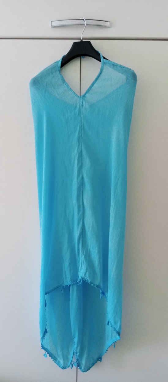 Kolsuz, dökümlü ve uzun kesim turkuaz pareo, minimalist ve bohem tarz için uygundur. Tamamen el emeği ve sıfır hiç kullanılmamıştır.
