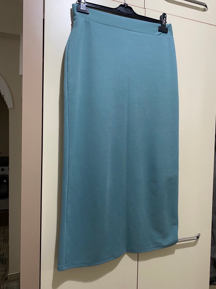Turkuaz beli lastikli astarsız etek 38-40 beden uyumlu