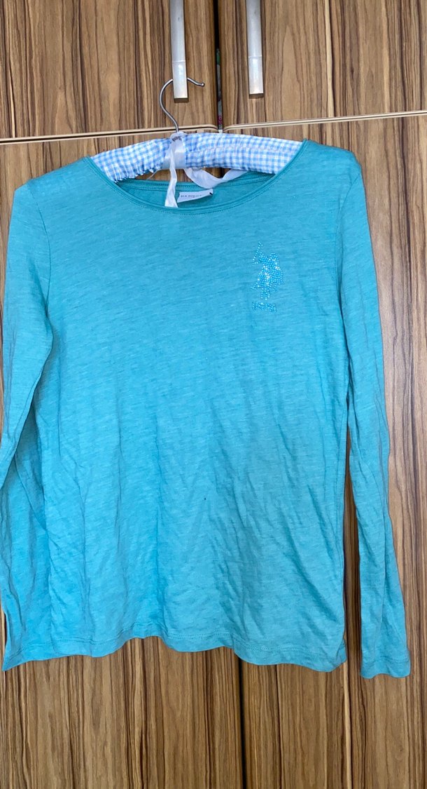 Turkuaz Uzun Kollu Keten Kadın Tişört