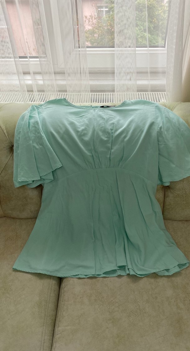 Turkuaz renkli, kısa kollu ve V yakalı bu bluz, salaş kesimi ve dökümlü tasarımıyla yumuşak keten kumaştan üretilmiştir. Günlük kullanıma uygundur. Hamile bluzu