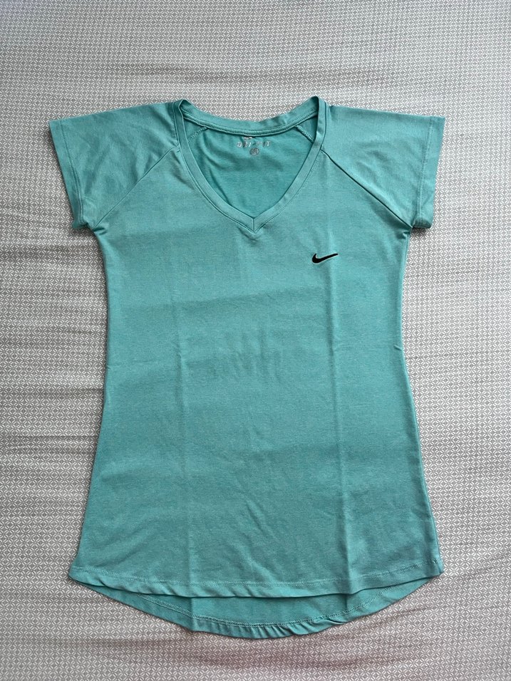 Turkuaz renkte, V yakalı kısa kollu kadın tişörtü. Yumuşak sentetik kumaştan, fit kesim ve pastel tonlarda, spor ve sokak stiline uygun. ♀️