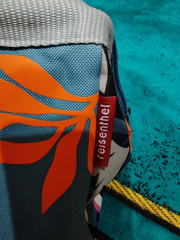 Turkuaz ve gri renklerde, turuncu yaprak desenli dayanıklıı. Kırmızı etiket yer alır.Hediye geldi fazla olduğu için satıyorum araştırın fiyatını öyle yazın.