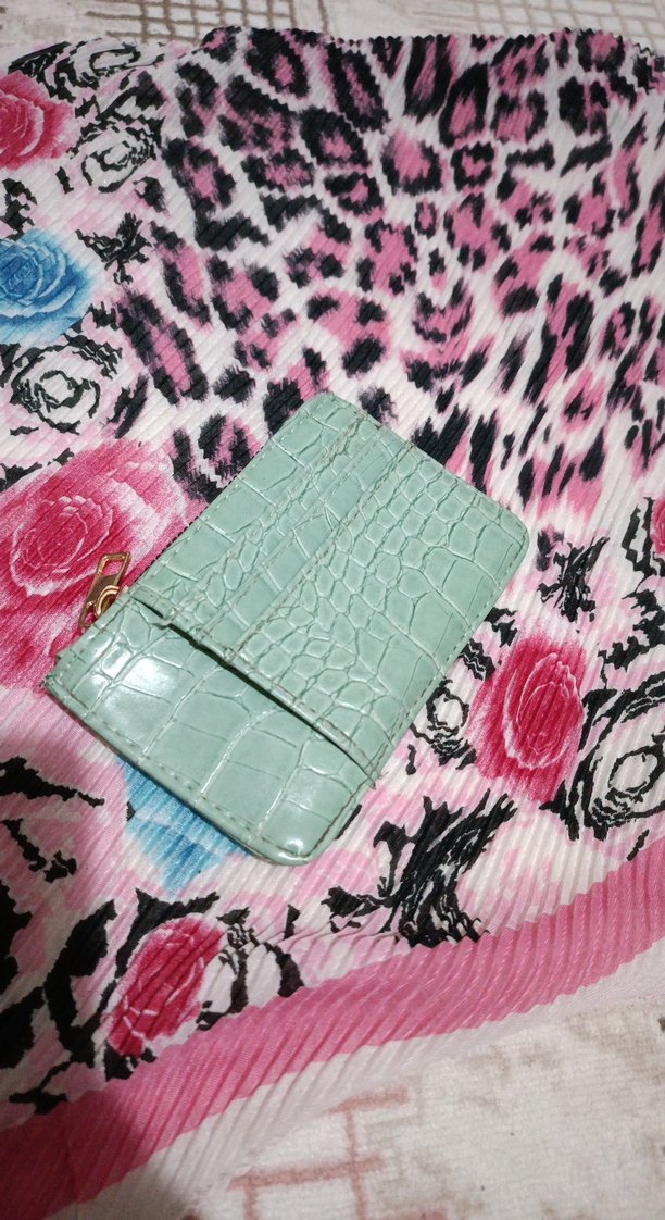 Turkuaz renkte, yılan derisi desenli ve fermuarlı kadın cüzdanı. Sentetik kumaştan yapılmış, bohem ve retro tarzına uygundur.