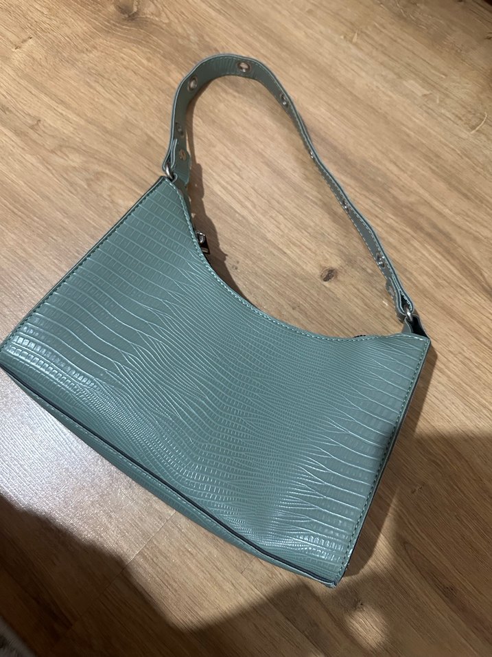 Turkuaz renkli deri çanta, yılan deseni ve tokalı askısı ile günlük kullanıma uygun, trend sokak stili için ideal. Dikiş kısmında hafif açılma var resimde gösterdim.