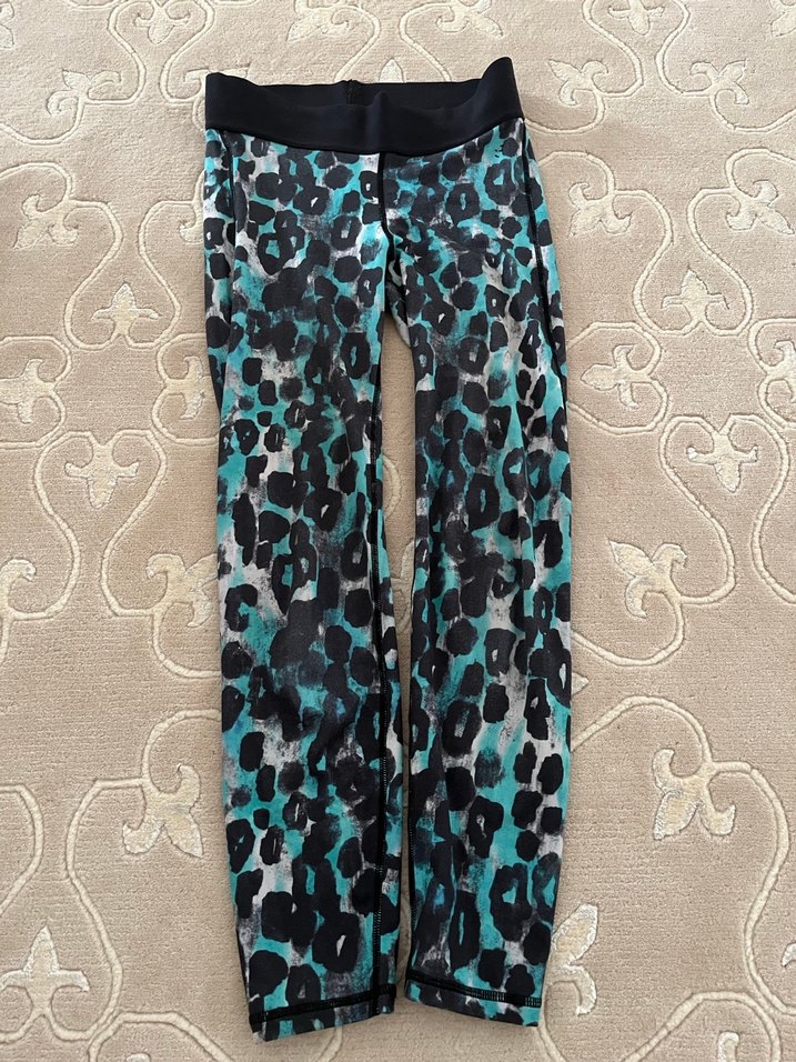 Sentetik kumaştan, elastik bel bantlı, turkuaz yılan desenli, normal boy kadın tayt. Spor ve sokak stiline uygun, dar kesim.