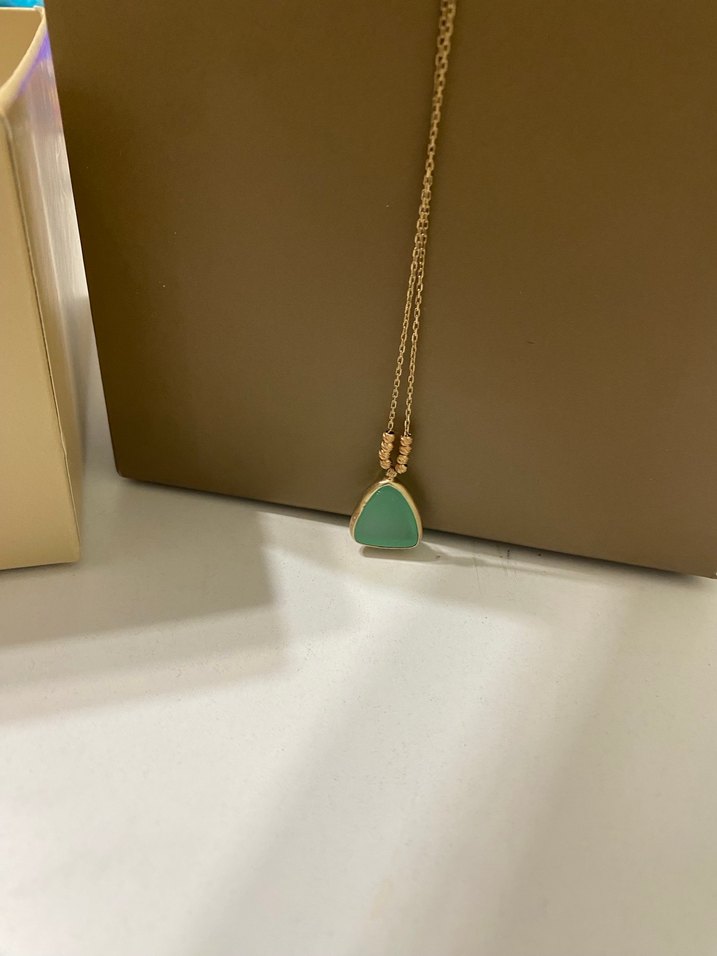 Turkuaz renkli, zincir detaylı midi uzunlukta, desen içermeyen minimalist ve çağdaş tarzda günlük kullanıma uygun kolye.