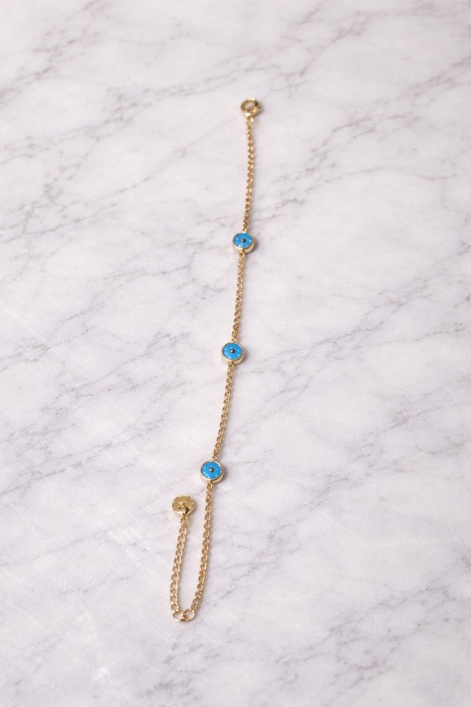 Bu kadın bileklik, küçük turkuaz puantiyeli detaylara sahip ince zinciriyle minimalist ve bohem tarzı bir araya getirir, günlük kullanıma uygundur.