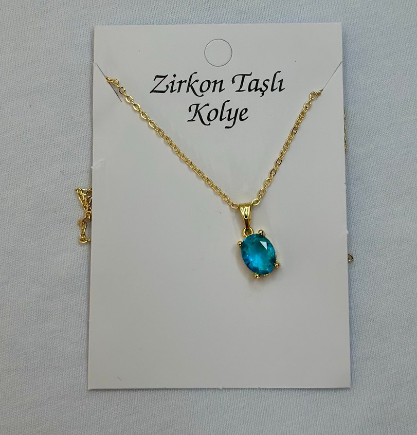 Turkuaz Zirkon Taşlı Mini Zincir Kolye