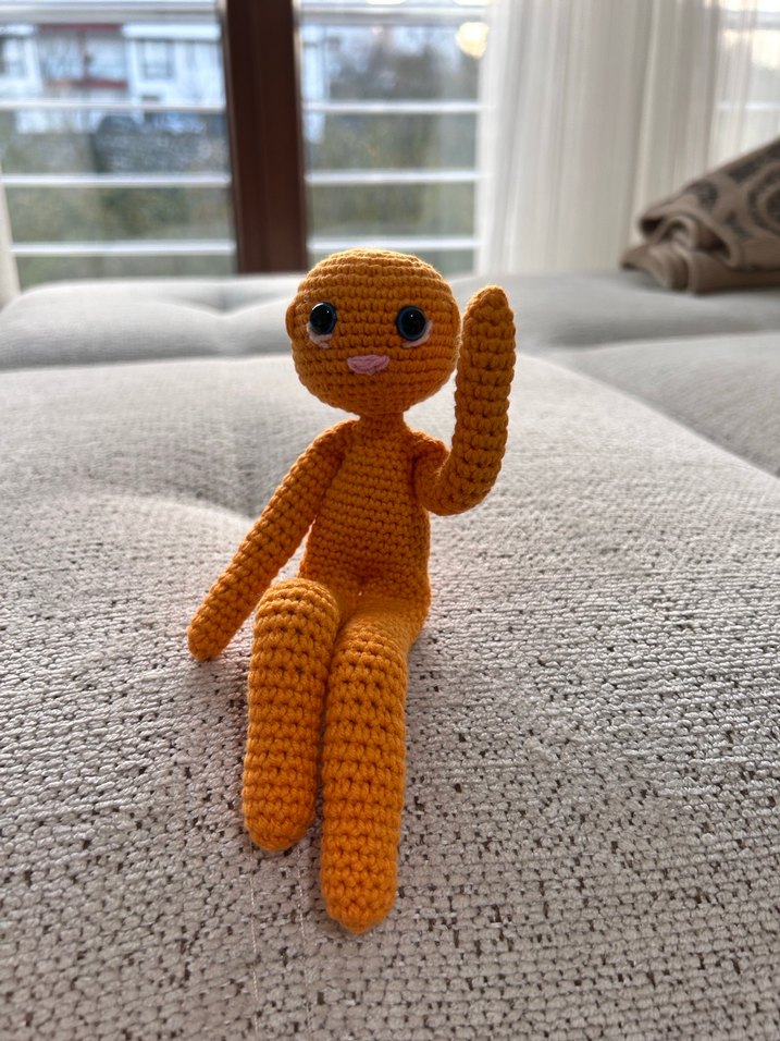 Renkli turuncu peluş oyuncak, yumuşak iplikle el örgüsü yapılmıştır. Büyük gözleri ve dostça gülümsemesi vardır. Uzun kolları ve esnek duruşu bulunur. ( içinde hareket teli var kolları bacakları hareket ediyor)