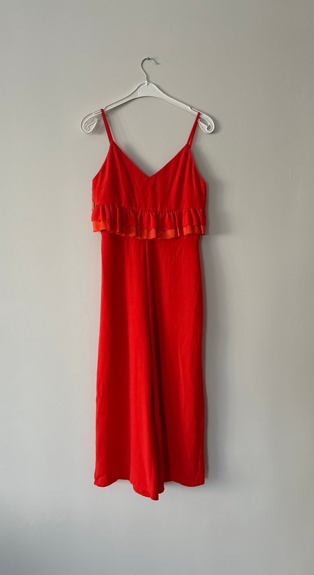 Turuncu Askılı Fırfırlı Bohem tulum