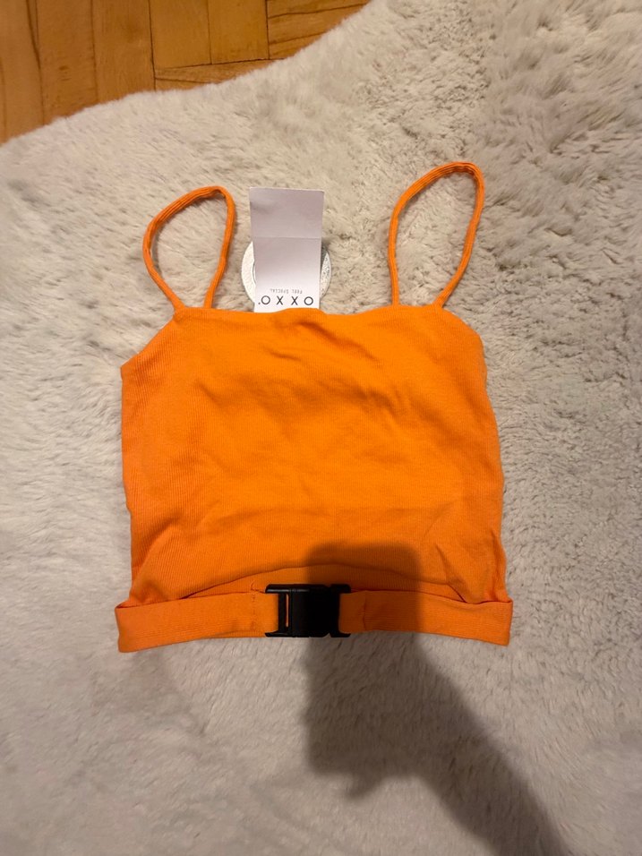 Turuncu, kemerli ve ince askılı mini atlet, yumuşak kumaştan yapılmıştır. Sokak tarzı ve rahat dış mekan kullanımı için uygundur.