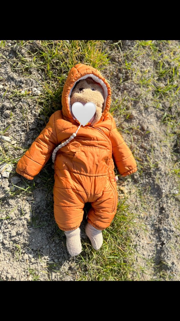 Koyu turuncu renkte, yumuşak polar kumaştan yapılmış bebek tulumu. Sıcacık ve rahat bir kullanım sunar.