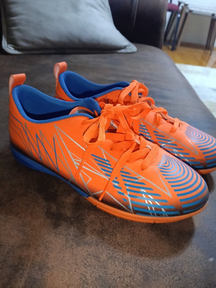 Turuncu renkli, bağcıklı ve kauçuk malzemeden üretilmiş erkek futbol ayakkabısı, modern batik desenlerle dikkat çekiyor. ⚽34 numara