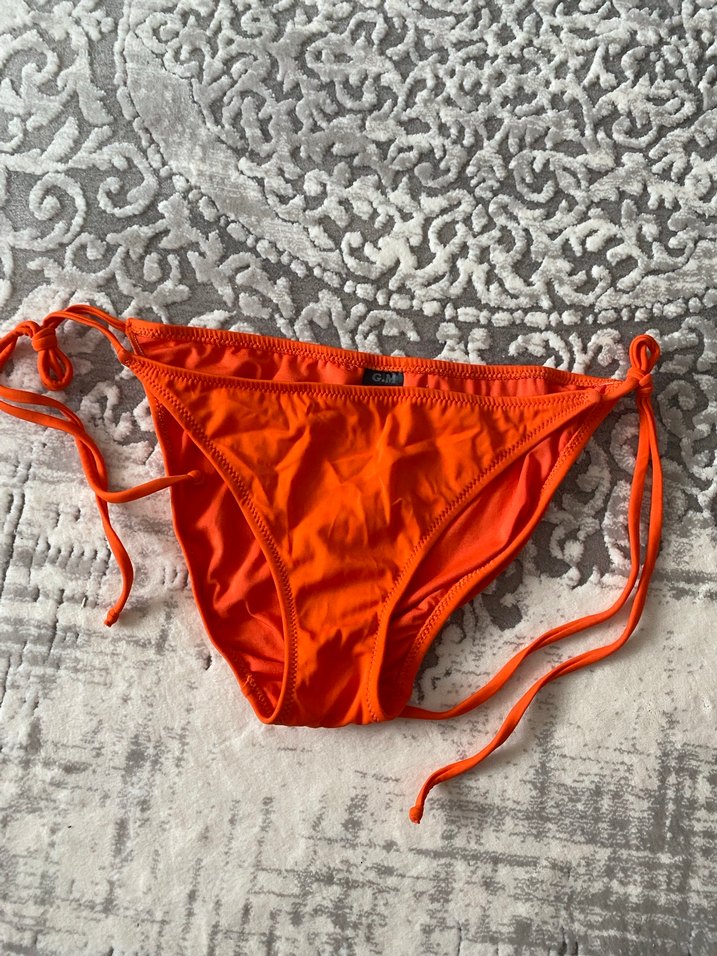 Canlı koyu turuncu renkli, bağcıklı yan detaylı, vücuda oturan kadın bikini altı. Sahil için rahat ve şık bir tercih. ️