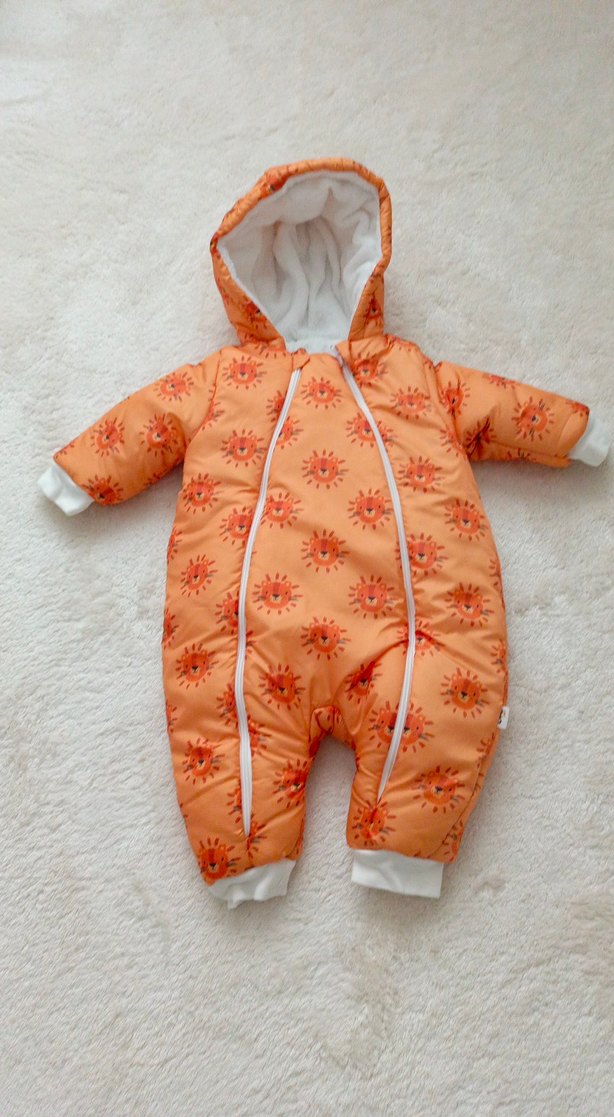 Turuncu, bağlama desenli ve fermuarlı bebek tulumu, kolay giyimi sağlar. Yumuşak iç yüzeyli ve sıcak tutar. ❄️astronot tulum içi polar. unisex 9-12 ay