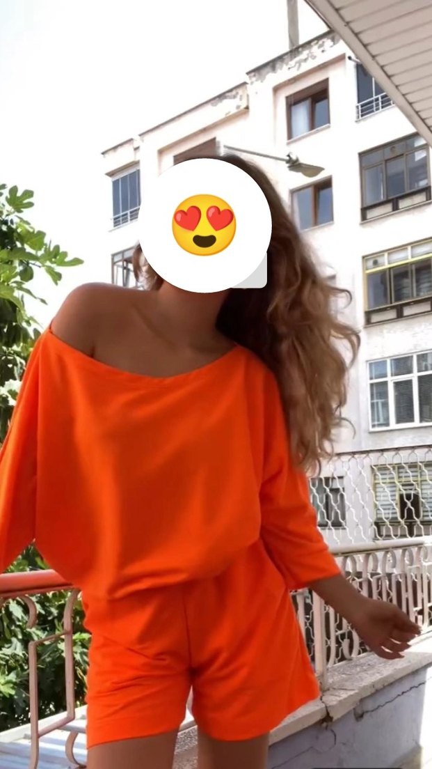 Kadınlar için turuncu bağlama desenli, bol kesim, uzun kollu, yuvarlak yakalı şortlu takim. Sentetik kumaştan, günlük kullanıma uygun, rahat ve şık görünümlü.