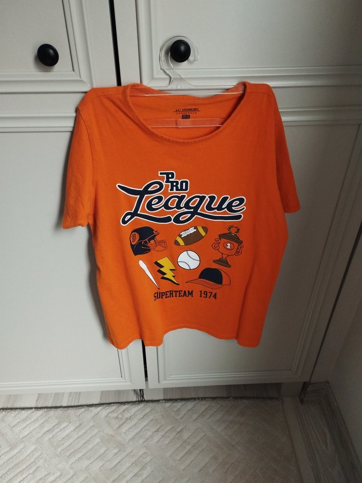 Turuncu renkli, baskılı erkek çocuk tişörtü. Kısa kollu, bol kesim ve yuvarlak yaka. Sentetik kumaştan, rahat ve günlük sokak stili için uygun. 10 11 yaş