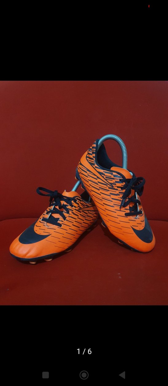 Turuncu baskılı, bağcıklı erkek futbol ayakkabısı, dayanıklı kauçuk malzemeden üretilmiş, sokak tarzına uygun ve Orjinal