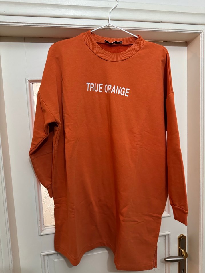 Uzun kollu, yuvarlak yakalı ve 'TRUE ORANGE' baskılı bol kesim sweatshirt, yumuşak ve sıcak kumaştan yapılmıştır. Koyu turuncu rengiyle rahat şıklık sunar. Boyu uzun kalça altına kadar