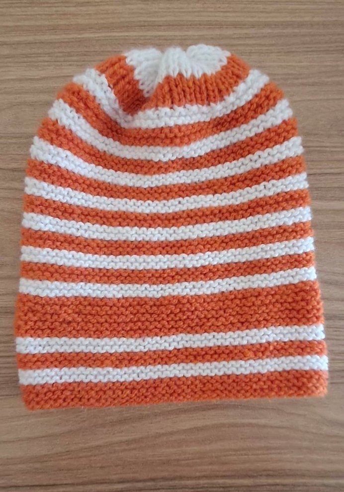 Turuncu Beyaz Çizgili Örgü Bere