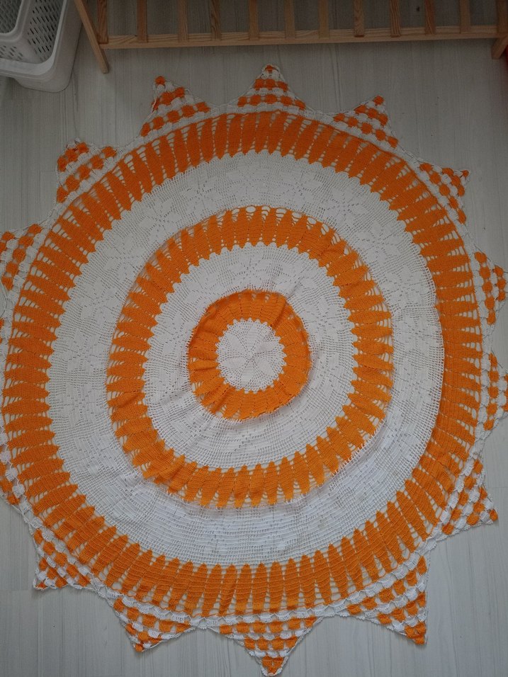 Turuncu Beyaz El Örgüsü Bohem Halı çeyizlik örtü