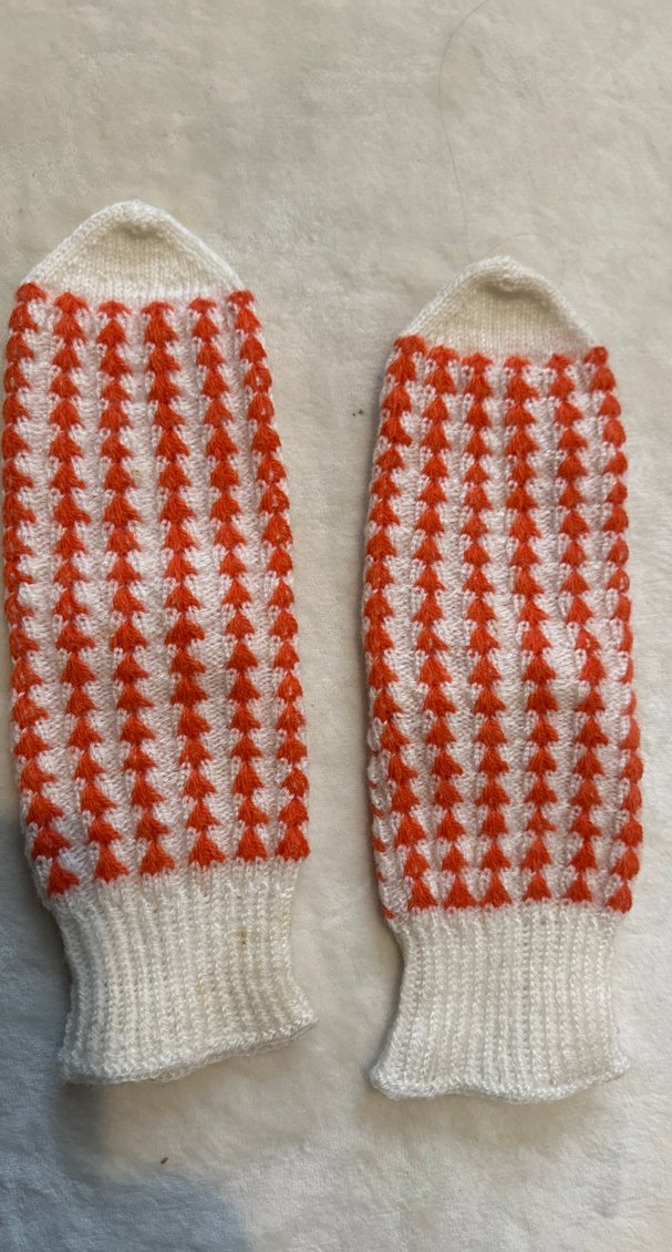 Yumuşak örgü dokusuyla beyaz ve parlak turuncu çizgilerden oluşan kadın pati sıfırdır