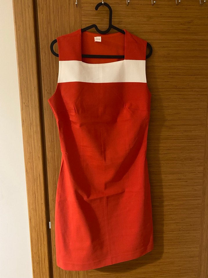 Turuncu Beyaz Yaka Detaylı Kolsuz Elbise